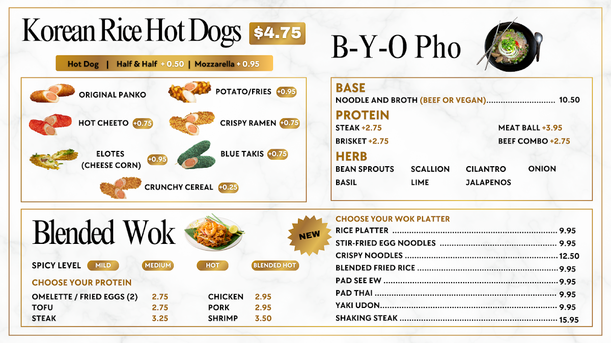 If you’re craving something fruity, opt for the Mangonada or Strawberrinada, both bursting with flavor and zest. For those who prefer savory options, the Popcorn Chicken comes highly recommended—crispy, seasoned bites served with fresh garnishes. Many customers rave about the generous portions and delightful flavors, especially the saucy Korean Fried Chicken Wings and uniquely prepared corn dogs.